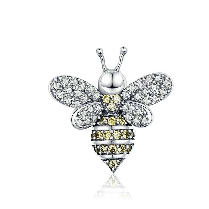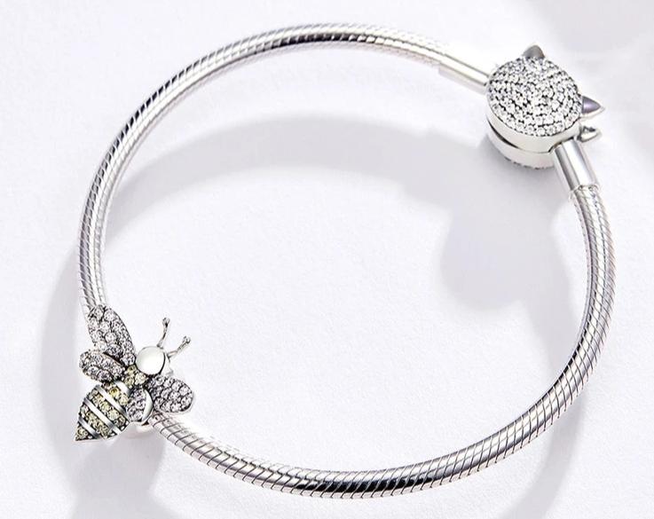 This Bee-shaped charm is detailed with a yellow Zircon stone and a line of glittering stones. Beautifully laid in a sterling silver setting. Designed in lovely bee shaped and inlaid with white and yellow cubic zirconias, is a delicate charm added to your charm bracelet, would make you purer and eye-catching.