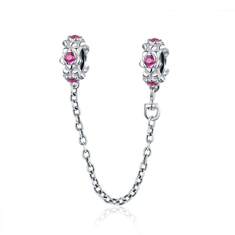 The world’s most popular silver alloy, our sterling silver consists of 100% silver. This blend is excellent for jewelry because it preserves the color, luster and the weight of silver while vastly improving the durability of your charms. With this fairy flower garland pink elegant stylish sterling silver safety chain is a reminder of the bonds that connect us and the perfect design to keep your treasured collection of beloved family moments safe.